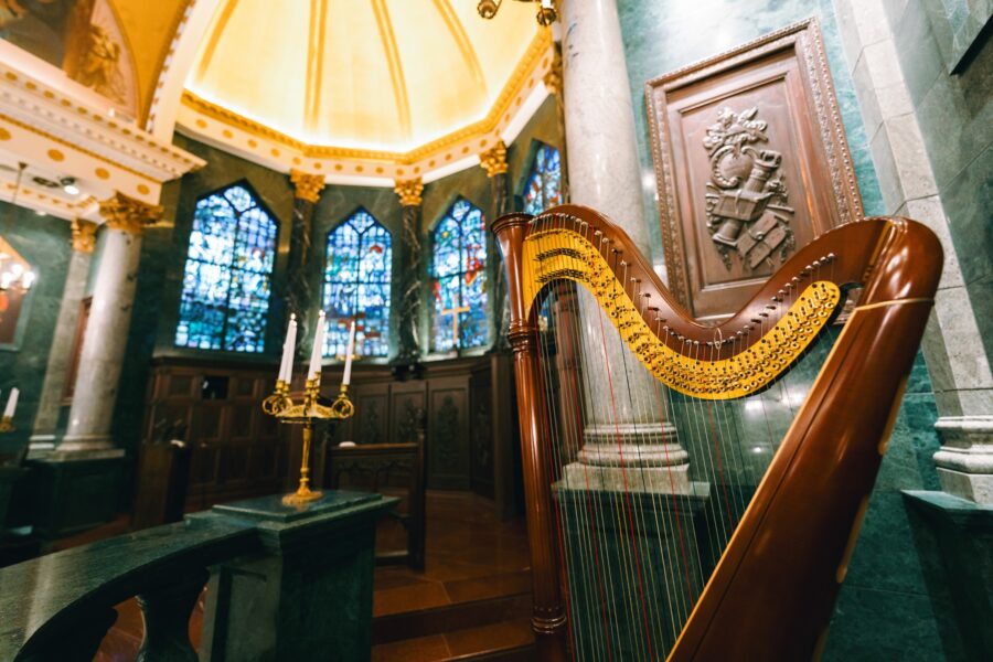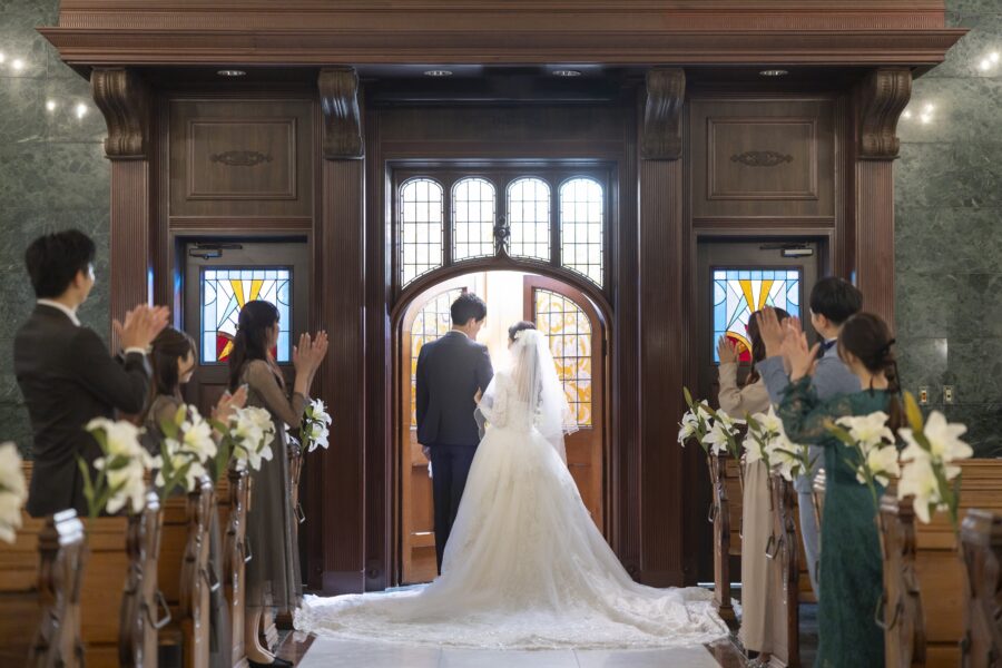 【 非日常に包まれた宮殿 】200年前のステンドグラスが輝く正統派な大聖堂、大理石であしらわれた重厚感のある館内は招待されたゲストを魅了する空間に♪