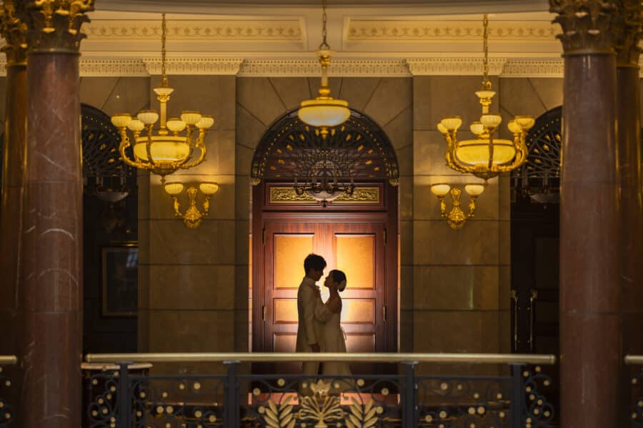 【 非日常に包まれた宮殿 】200年前のステンドグラスが輝く正統派な大聖堂、大理石であしらわれた重厚感のある館内は招待されたゲストを魅了する空間に♪